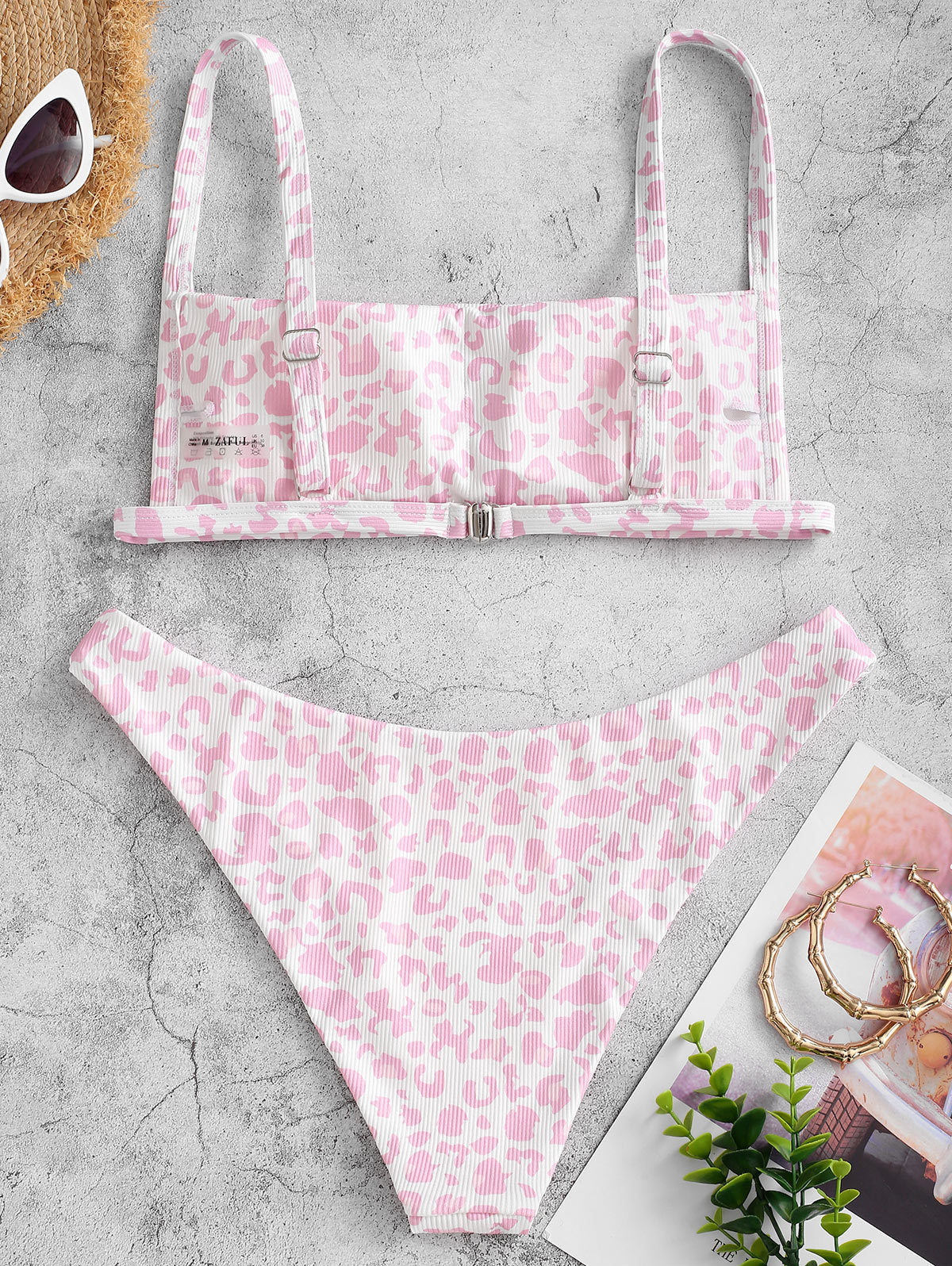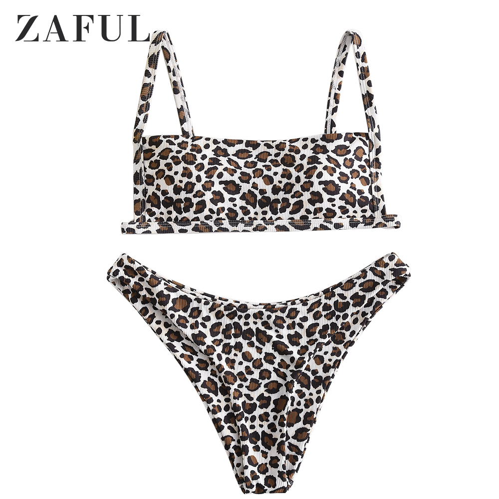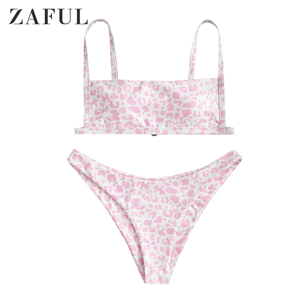 ZAFUL Sexy Leopard Print Bikini 2021 Swimsuit Women Swimwear Cute Ribbed Bathing Suit Brazilian Biquini Set Beach Summer Female