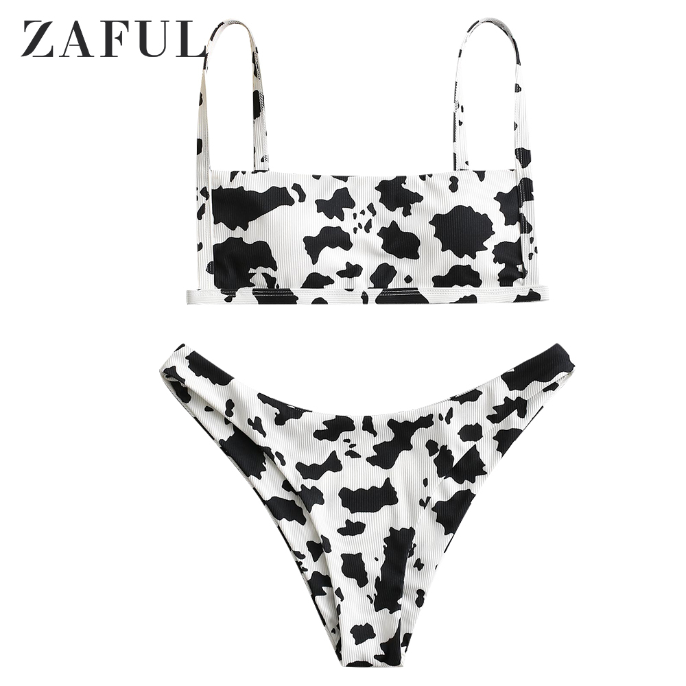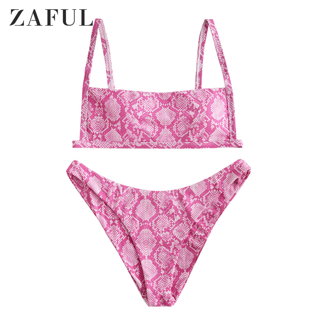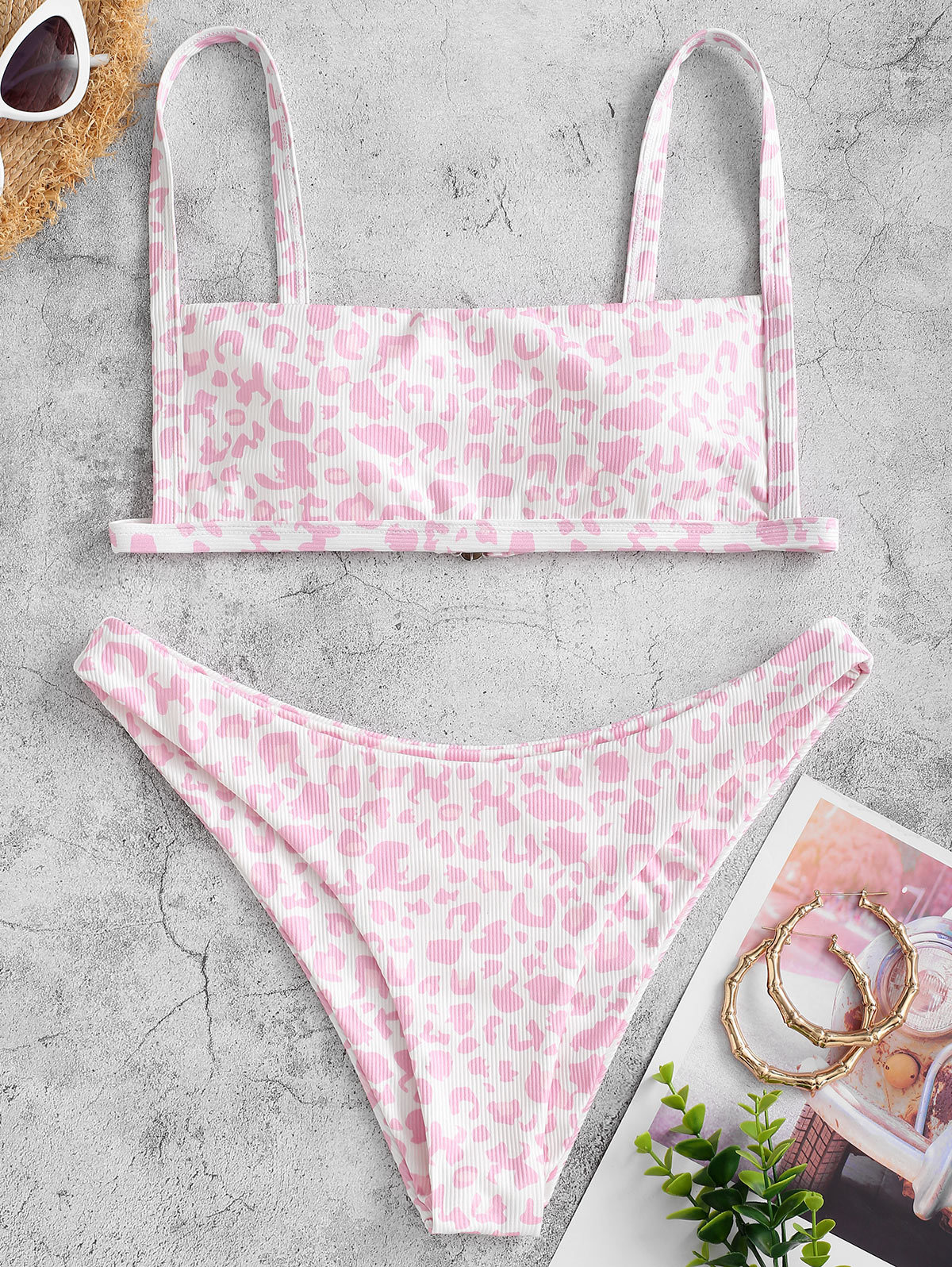 ZAFUL Sexy Leopard Print Bikini 2021 Swimsuit Women Swimwear Cute Ribbed Bathing Suit Brazilian Biquini Set Beach Summer Female