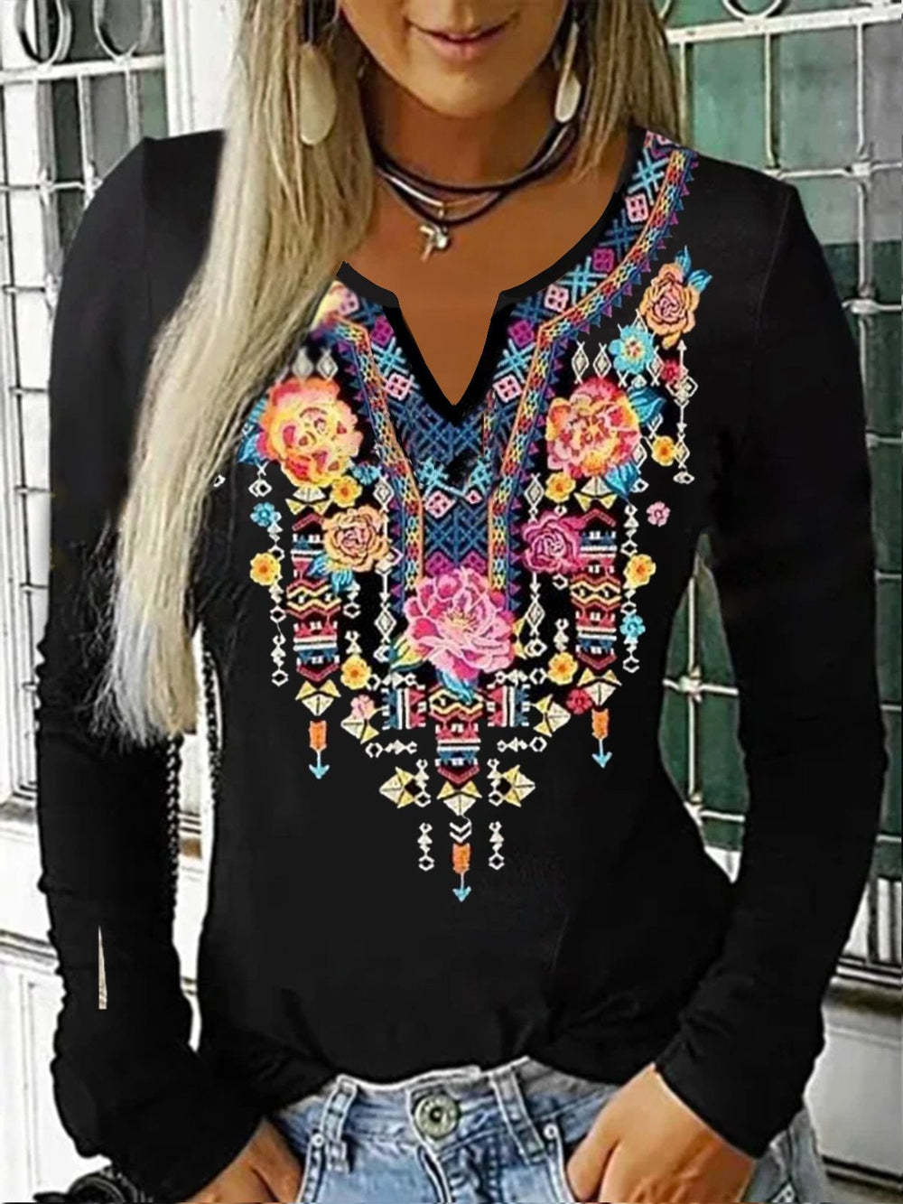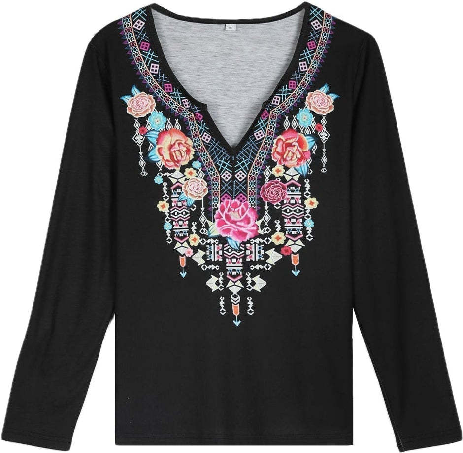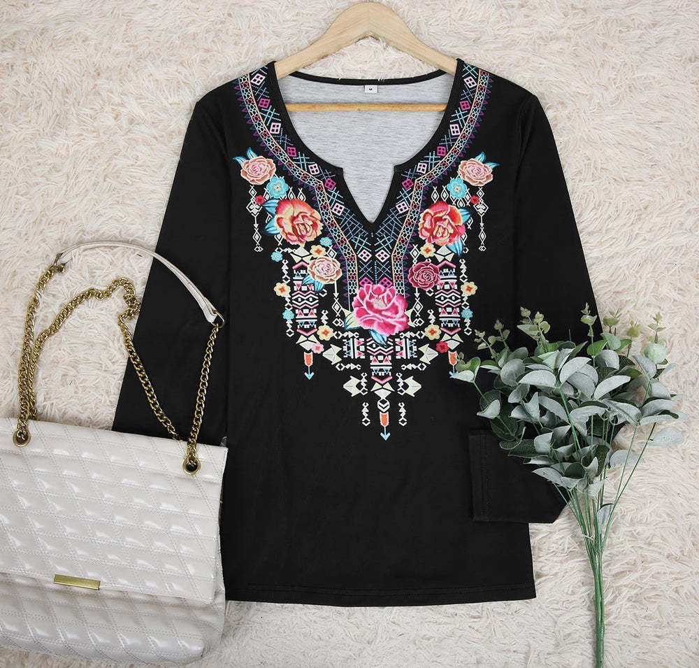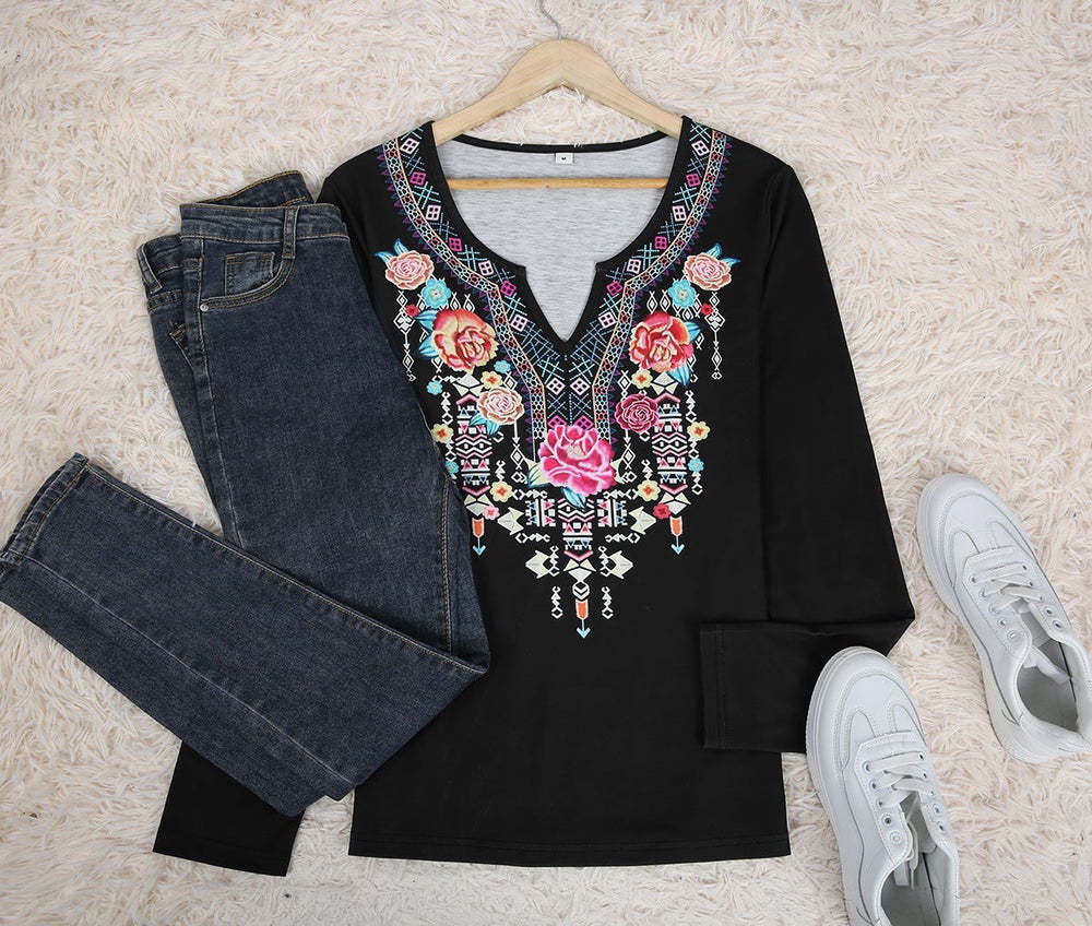Comfy Black V-Neck Print Top