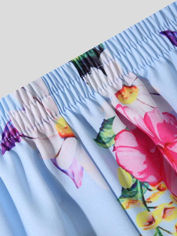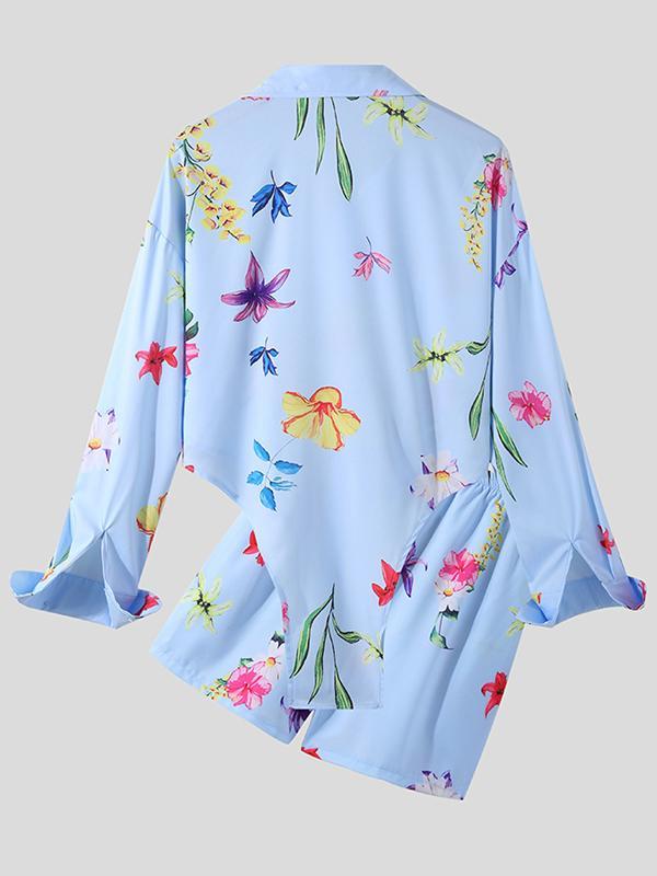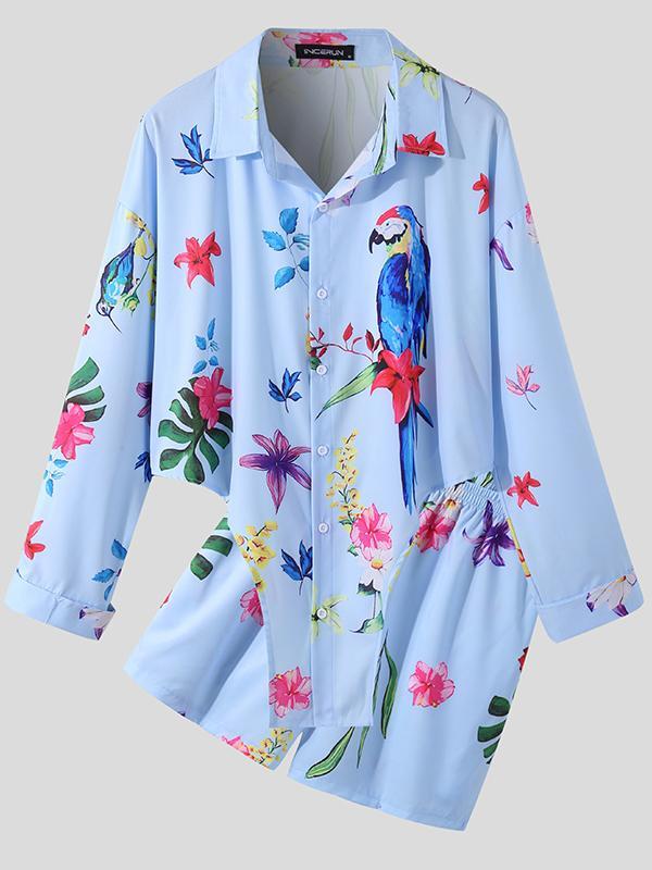 Flower Bird Print Irregular Hem Shirts Set SKUH68495
