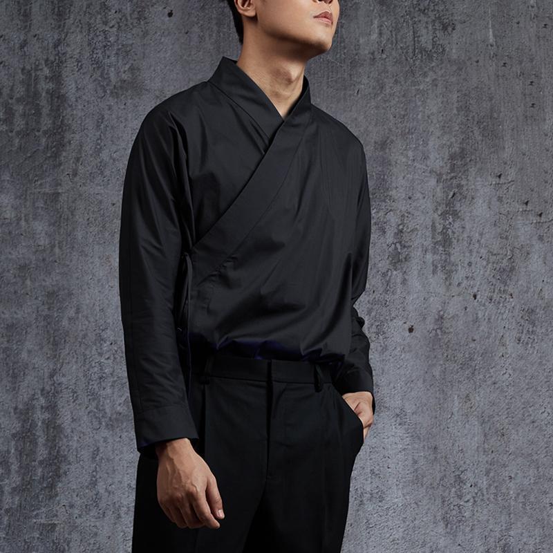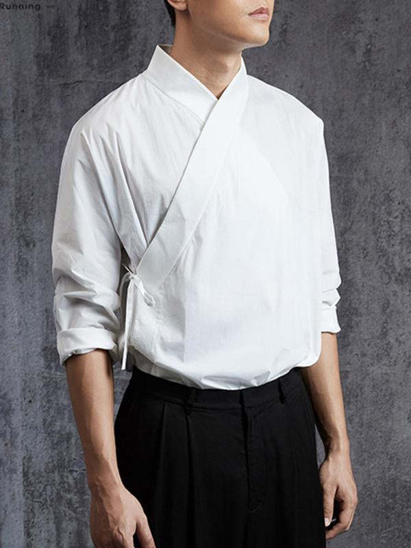 Mens Long Sleeve Retro Chinese Shirts V Neck Ethnic Style Loose Tops Shirt