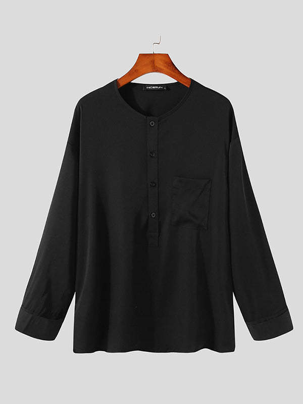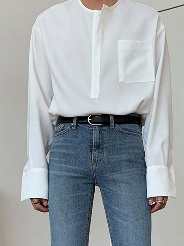 Men's Loose Solid Color Long-sleeved Shirts SKUH04705